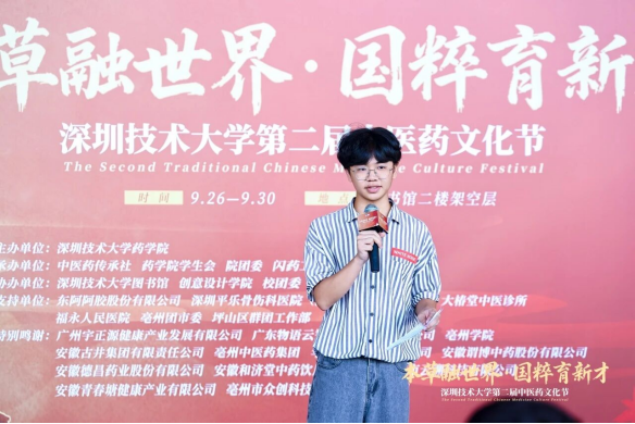 学生代表李凤讲到,本次中医药文化节,让我们深刻体会到中医药文化的博大精深。让我们携手为中医药文化的繁荣与发展贡献青春力量。