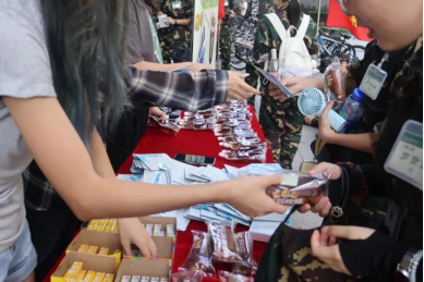 领到物资的新生们难掩喜悦之情:咬一口面包,快速补充消耗的体力;含一颗薄荷糖,驱散燥热;喝一口凉茶,缓解长途跋涉后的口干舌燥;而拿到特色面膜时,不少同学笑着说:"终于能给晒了一早的脸做个护理了!" 这些物资不仅舒缓了身体的疲惫,更驱散了精神上的倦意。